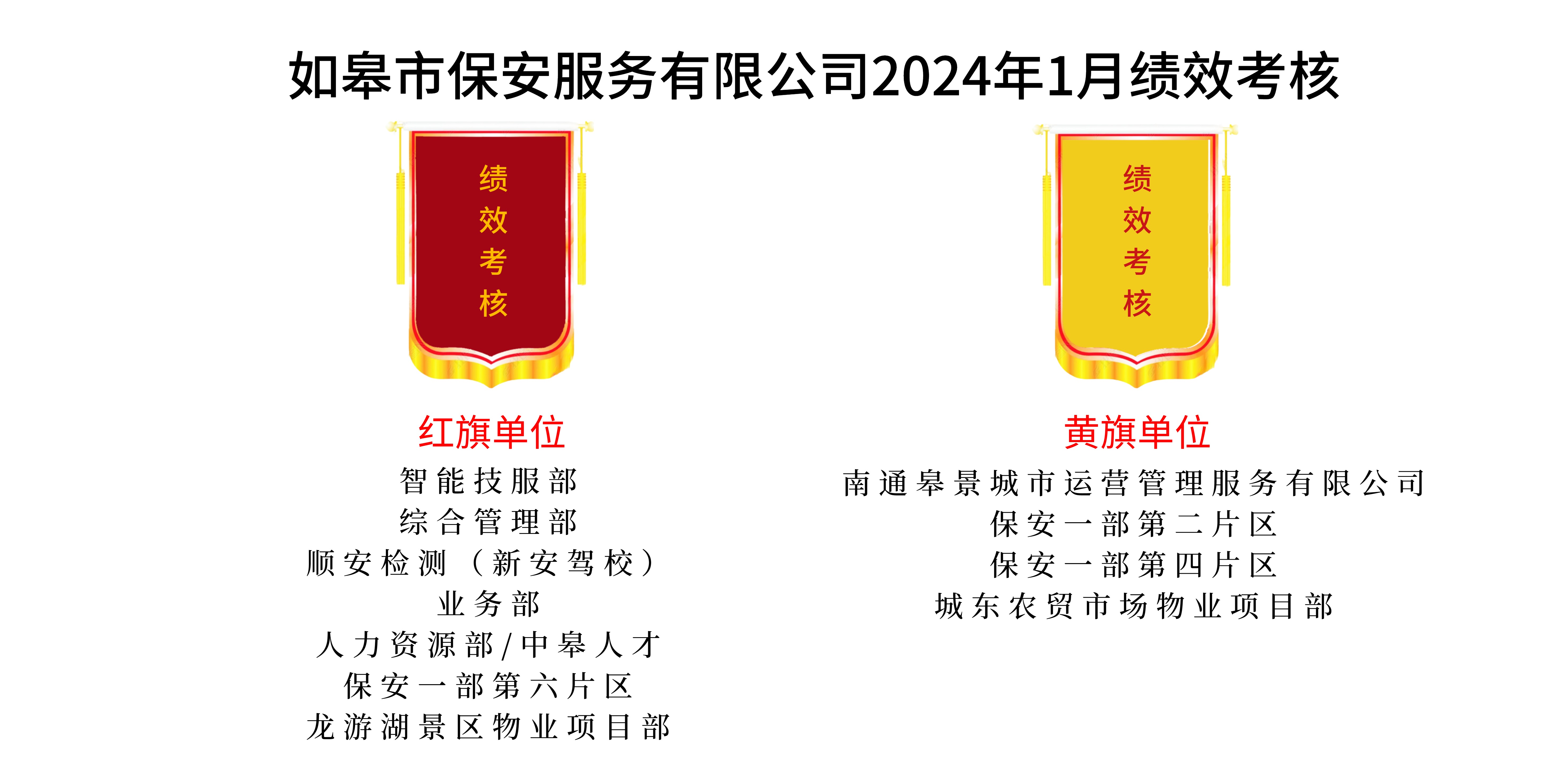 如皋市保安服務有限公司2024年1月績效考核結果公示