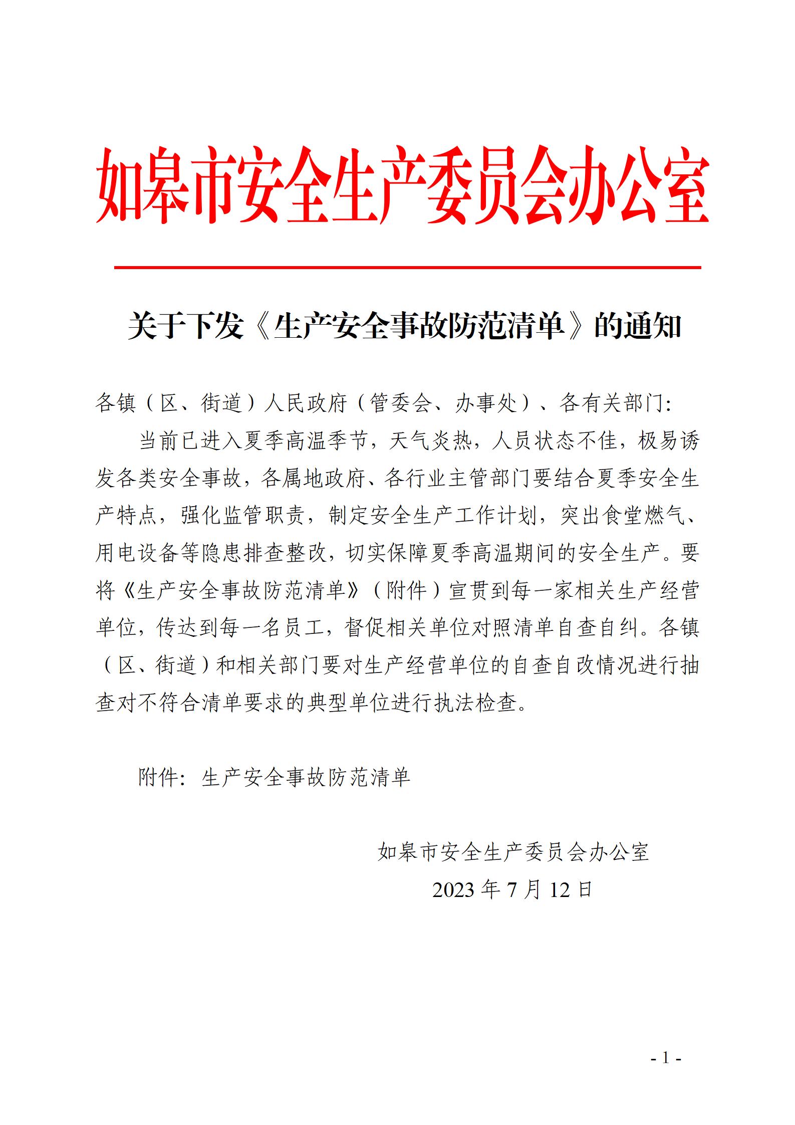 關于轉發《關于下發7月份<生產安全事故防范清單>的通知》的通知