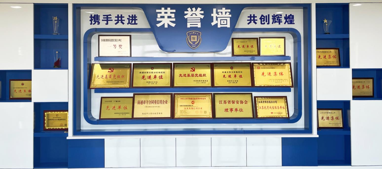 公司于2010年取得《保安服務許可證》、二級保安服務公司資質,系江蘇省保安協會理事單位;2015年被南通市工商行政管理局評為“守合同重信用企業”;2017年通過ISO9001:2015質量管理體系認證,被南通市公安局授予“保安聯動聯勤聯防先進單位”榮譽稱號;客戶安全率、滿意率均達到98%以上。2022年6月被中共如皋市委表彰為“先進基層黨組織”、2023年5月公司機動保障隊被如皋總工會授予“五一先鋒號”榮譽稱號,2022年營業收入2.6億元,納稅970萬元。