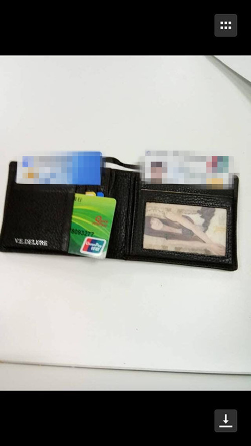 8月29日下午16:00左右花園農商行保安徐衛軍在大堂填單臺上拾到客戶一個錢包,內有3000元和多張銀行卡,己交還失主。