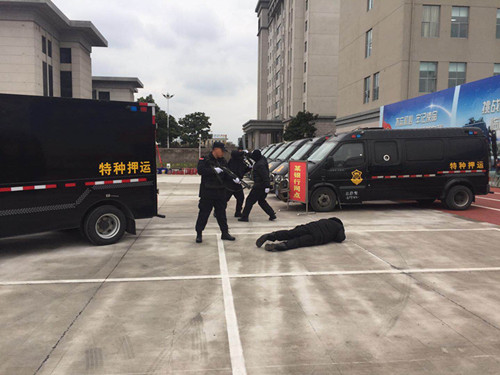 12月27日下午,如皋市保安服務有限公司“2018年度武裝押運匯報演練”在公安局戰訓基地舉行,廣大押運員發揚特別特別能戰斗的精神,冒著凜冽的寒風,進行了隊列會操、防搶演練、消防演練,各金融機構負責同志出席觀摩。