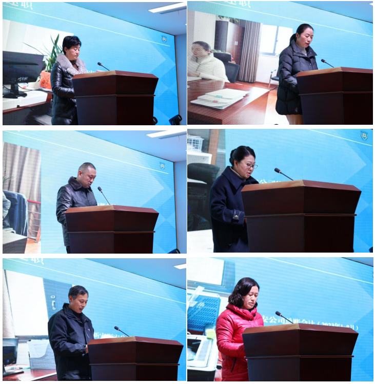 支部委員汪玉江、冒志宏、叢金勇、周林宏代表經(jīng)理層依次向職代會(huì)進(jìn)行2023年度述職,部署來年工作;各部門(單位)負(fù)責(zé)人圍繞2023年度黨風(fēng)廉政建設(shè)、經(jīng)營狀況、業(yè)務(wù)發(fā)展、隊(duì)伍建設(shè)以及2024年工作謀劃等方面依次向職代會(huì)進(jìn)行述職;公司行政管理部門副職及管理崗位人員述職材料以紙質(zhì)版提交職代會(huì)評議。